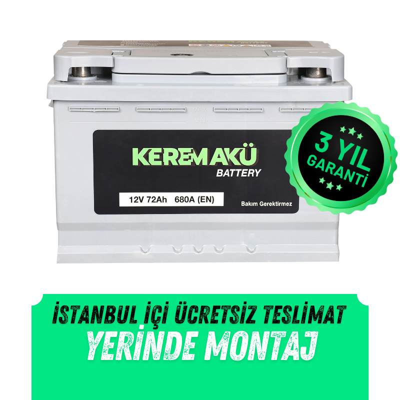 Kerem 72 Amper Akü - Güçlü Performans, 3 Yıl Garanti!