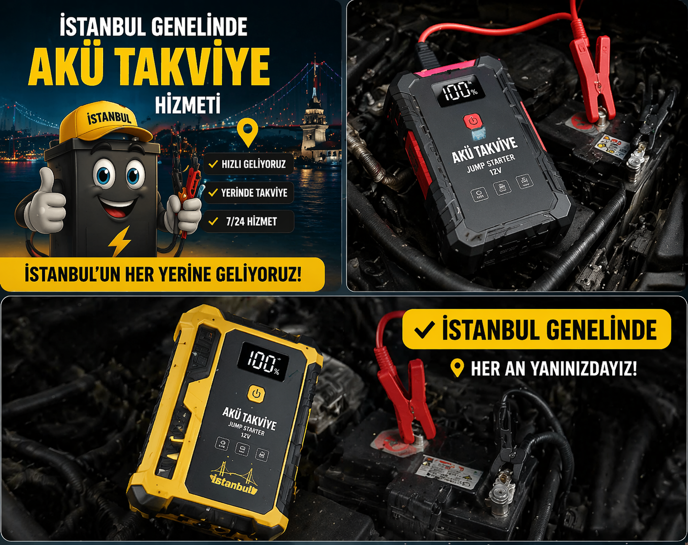 İstanbul’da bulunduğunuz adrese gelerek aracınıza yerinde akü takviye hizmeti sunuyoruz. Satın alma sonrası konum ve araç bilgisi alınarak hızlı yönlendirme yapılır. Bu hizmet akü değişimi değil, aracın güvenli şekilde çalıştırılması için verilen yerinde takviye desteğidir.